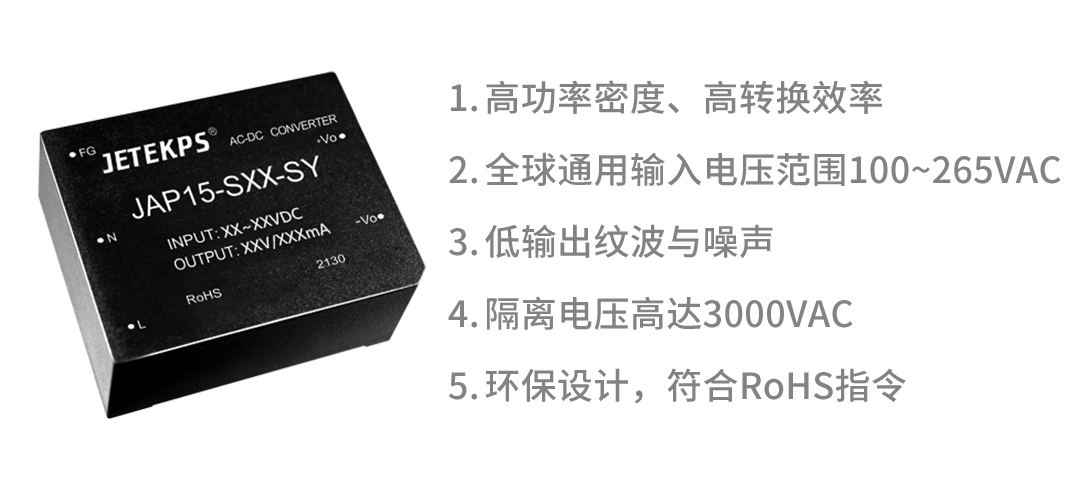 减少干扰性和电磁噪声影响,提高可靠性,延长设备的使用寿命,JAP15-SXX-SY通过隔离稳压的设计,效率高达82%以上,可以有效降低功耗,提供更纯净、稳定的电源、确保设备保持良好的工作状态